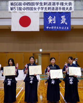 第51回中四国女子学生剣道選手権大会入賞者 |