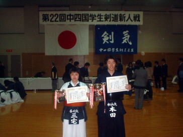 結果トーナメント 男子団体戦の部 優勝大学 松 山 大 学 女子団体戦の部 優勝大学 島 根 大 学 男子団体戦の部 最優秀新人賞 本 田 誠(松山大学) 女子団体戦の部 最優秀新人賞 三 宅 麻衣子(香川大学)