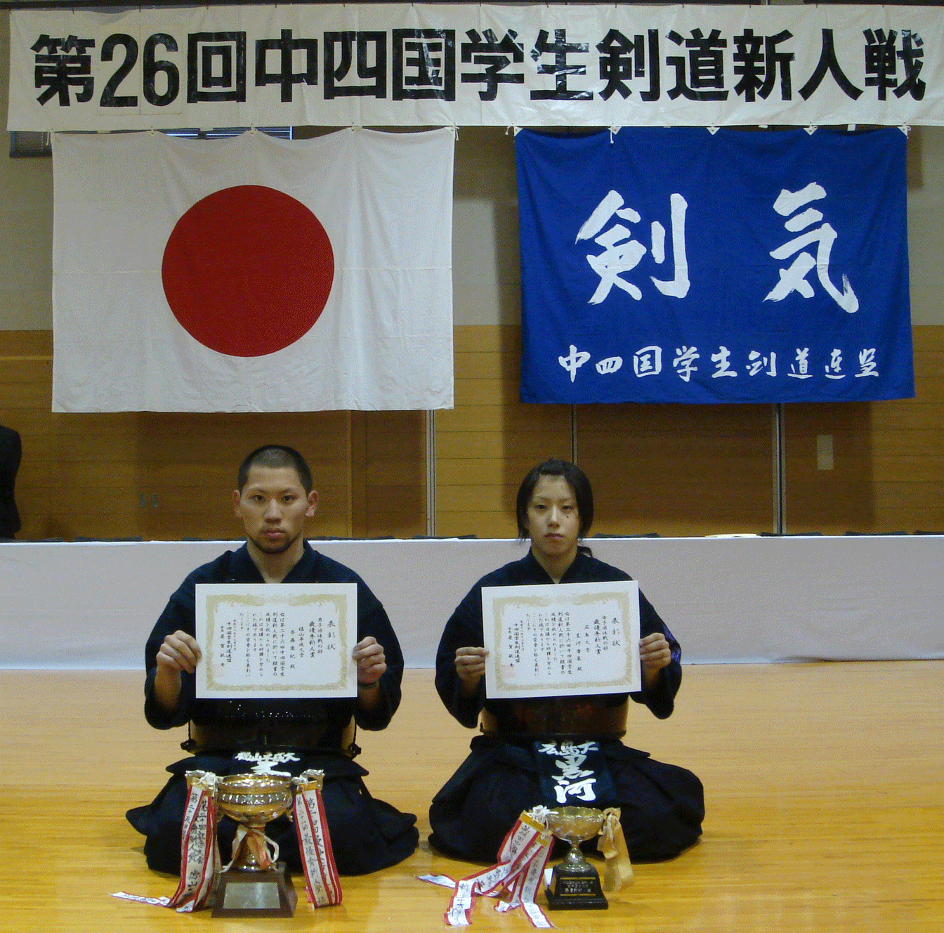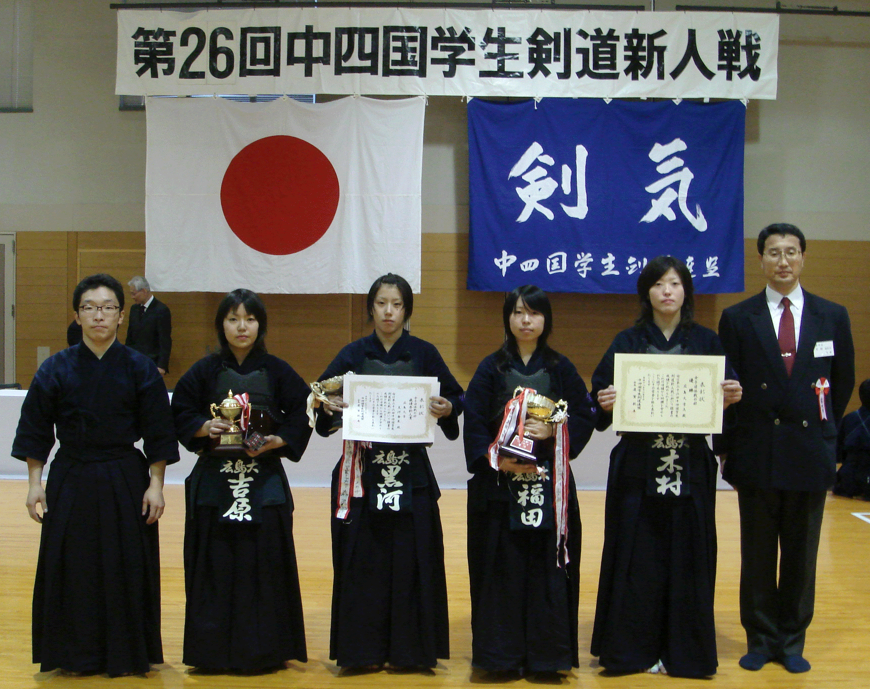 男子団体戦の部 結果トーナメント 優勝大学 福山平成大学A 女子団体戦の部 結果トーナメント 優勝大学 広 島 大 学 A 男子団体戦の部 最優秀新人賞 斉 藤 喬 紀(福山平成大学) 女子団体戦の部 最優秀新人賞 黒 河 香 菜(広島大学)